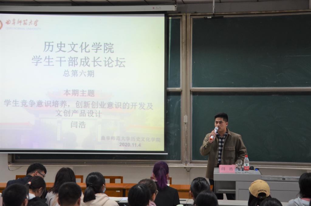 会上,党委副书记王建阳对新学期提出新要求,强调学生干部要处理好学习与工作的关系,并表达了对2020届学生会的期盼和祝愿,希望同学们团结协作,做好学生会的名片。随后,闫浩老师为同学们作了题为“学生竞争意识培养,创新创业意识的开发及文创产品设计”的报告,希望同学们脚踏实地、虚心求教的同时,在工作和学习中要保持竞争意识,在良性竞争中共同成长,并结合多年的创新创业参赛经验,为同学们详细讲解了文创产品的创意来源和相关比赛的注意事项。