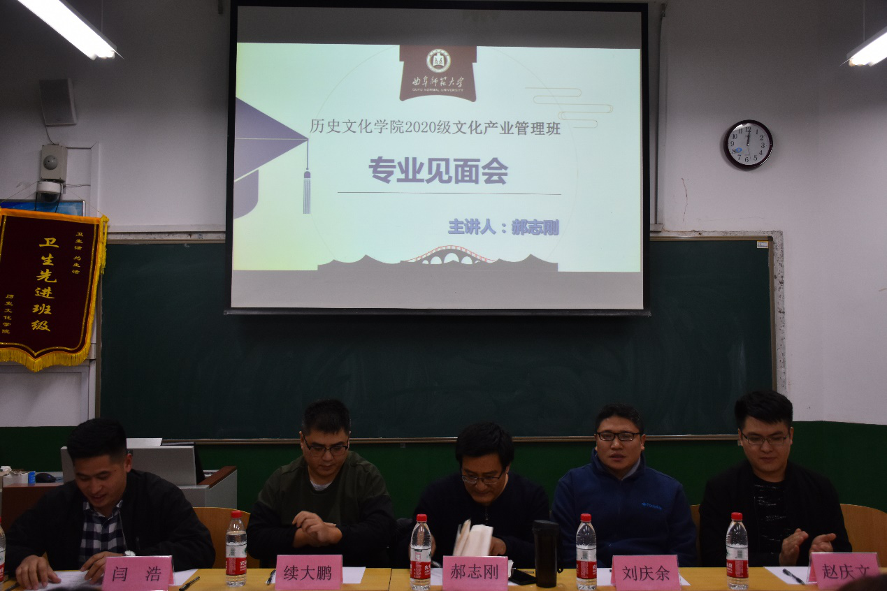 11月6日晚,2020级文化产业管理专业师生见面会在文史楼405教室举行。幸运飞艇 郝志刚老师、刘庆余老师、续大鹏老师、赵庆文老师以及2020级辅导员闫浩出席了见面会。见面会由闫浩主持,郝志刚老师主讲。