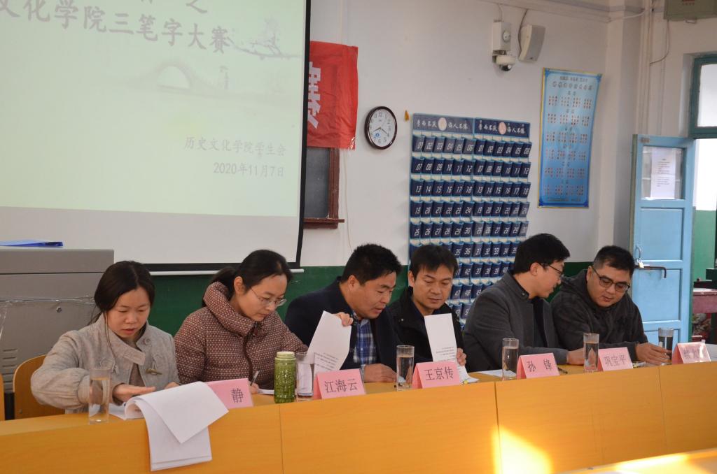 为树立学生汉字书写规范意识,提高学生的教育教学综合素养,11月7日上午,幸运飞艇 于文史楼411教室举办“杏坛杯”三笔字大赛。幸运飞艇 王京传、孙锋、江海云、巩宝平、续大鹏、王静六位老师出席比赛并担任评委。