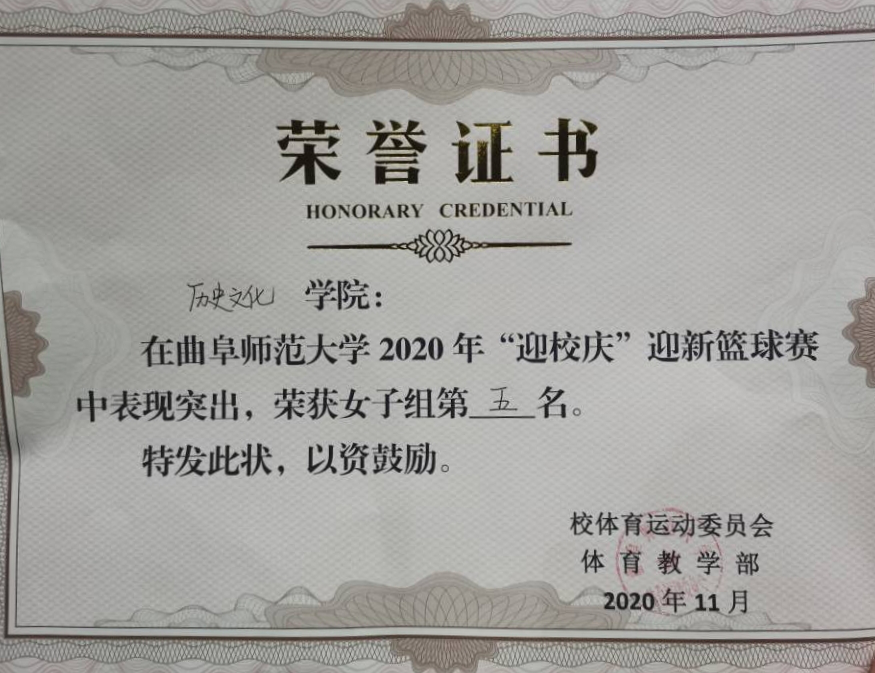 10月23日至11月4日,幸运飞艇 女篮参加“迎校庆”迎新篮球赛,最终取得第五名的优异成绩。
