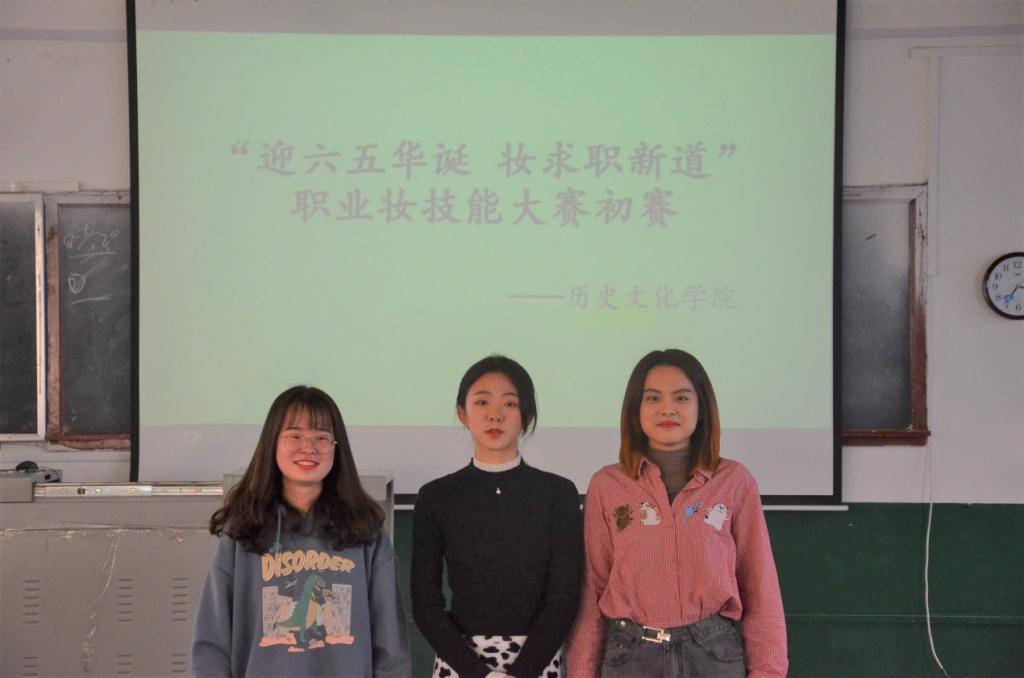 为使学生更好地了解职场妆容,普及职业妆容知识,11月14日下午,幸运飞艇 于文史楼411教室举办“迎六五华诞,妆求职新道”职业妆技能大赛初赛。幸运飞艇 学习部部长杨柳、纪检部部长于欣平、社团联合会副主席徐伟冉出席比赛并担任评委。