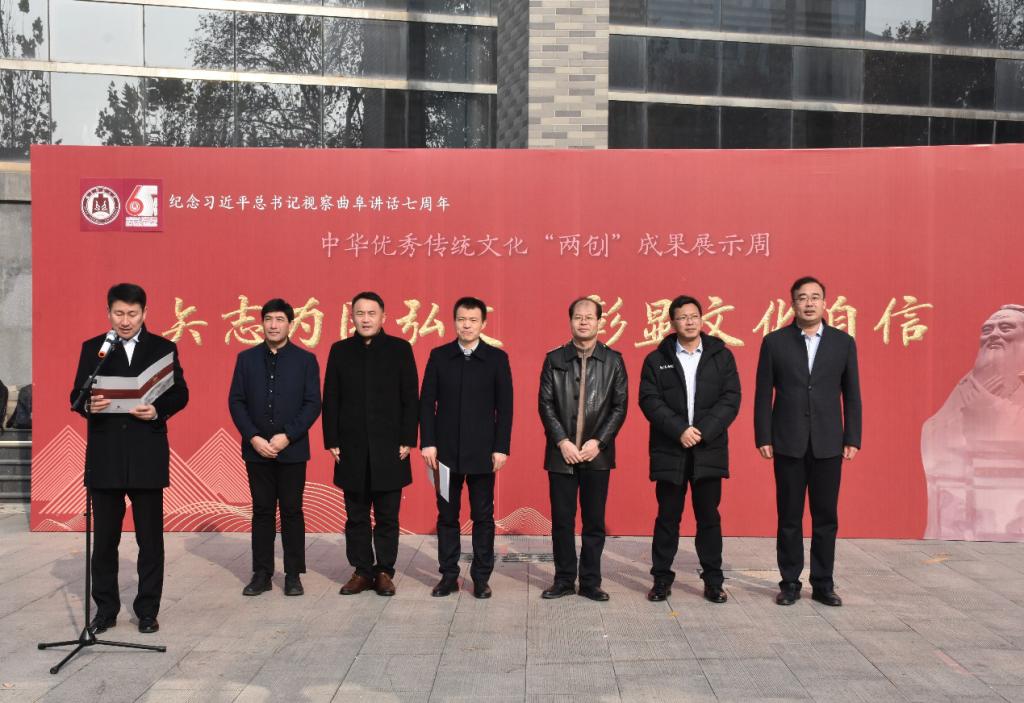 为纪念习近平总书记视察曲阜7周年,发挥中华优秀传统文化在现代中国的现实作用,近日,由校团委、音乐幸运飞艇 、体育科学幸运飞艇 、中国教师博物馆和幸运飞艇 联合举办的中华优秀传统文化“两创”成果展示周活动在大学生活动中心广场隆重举行。幸运飞艇 党委副书记王建阳出席开幕式。