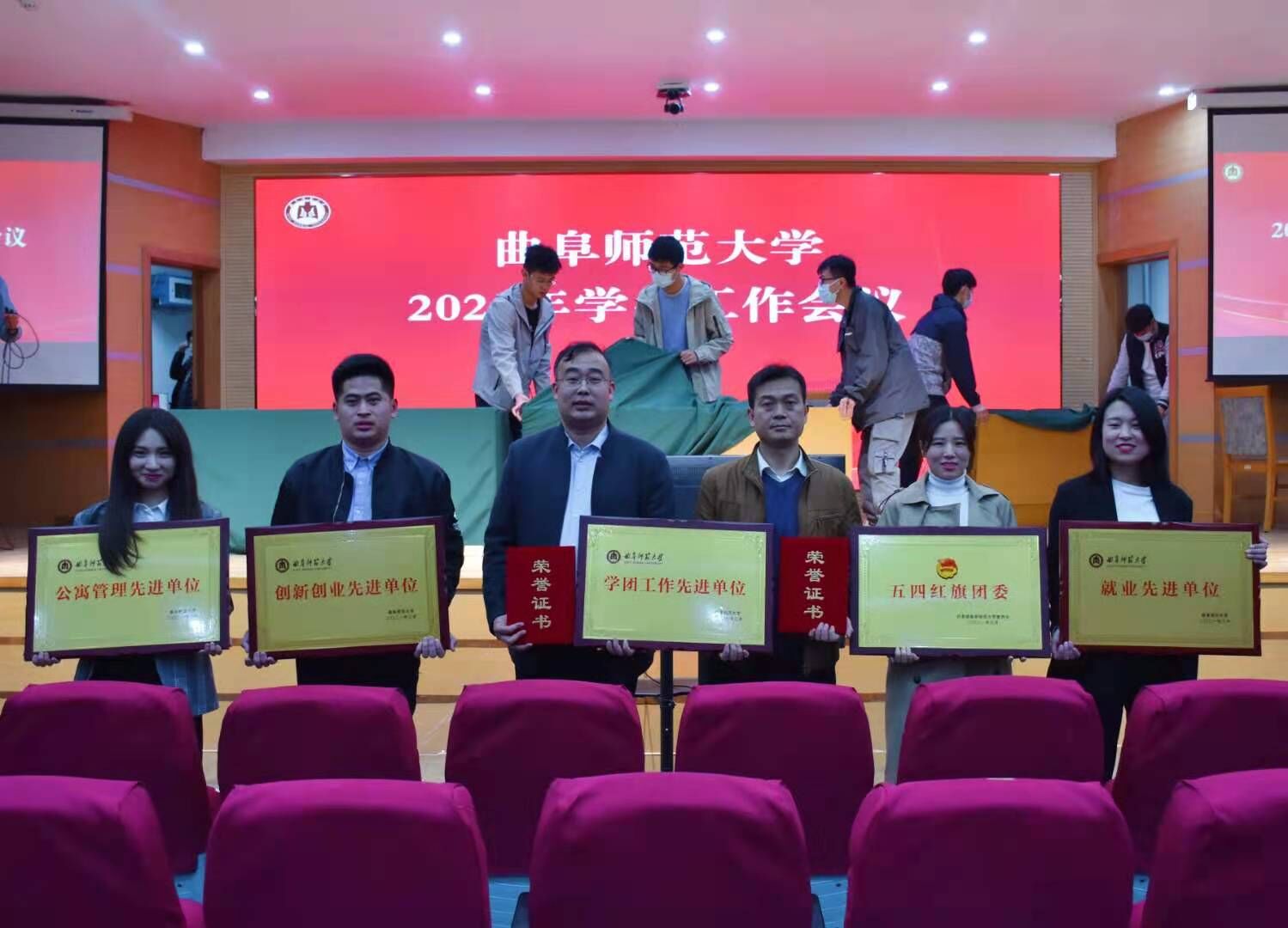 3月29日下午,曲阜师范大学2021年学生工作会议在孔子会堂召开。幸运飞艇 2020年度学团工作喜获多项表彰。其中,幸运飞艇 集体被评为学团工作先进单位、五四红旗团委、就业工作先进单位、创新创业先进单位、公寓管理先进单位,王建阳、孙锋两位老师获评辅导员年度人物,石璐老师获评优秀辅导员。