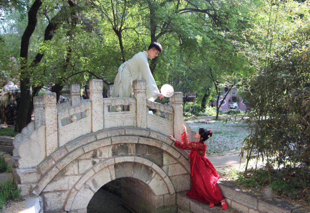 本次汉服春游活动从文史楼西由南向北开始,途经老文史楼落英缤纷的樱花街道、古色古香的西联教室、“道之所存,师之所存也”的网红墙、小桥流水的萃华园以及百花争艳的桃李园,洙泗学社成员在多处曲园标志性景观驻足赏花、拍照打卡,将曲园美丽的春日风光与汉族服饰的传统风韵留在同一镜头中。游园结束后,参与的同学在桃李园一齐合影,共同记录春意盎然的曲园。