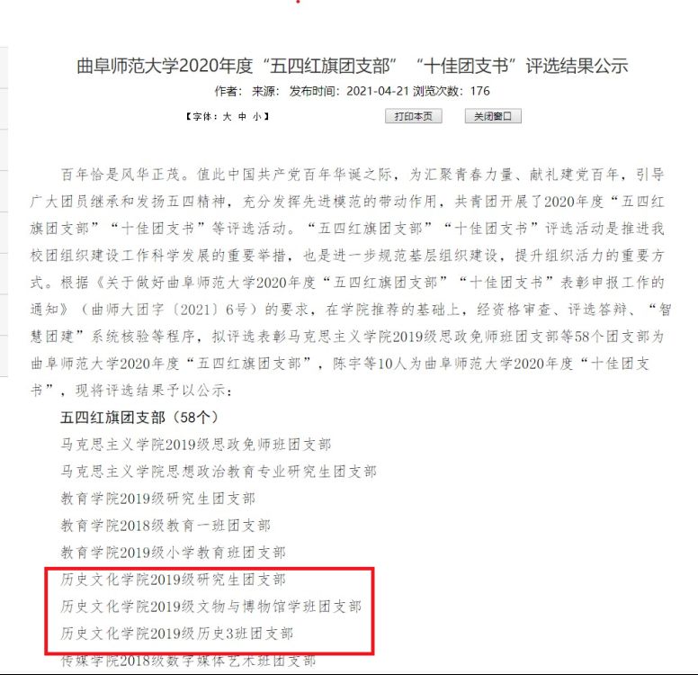 近期,我校2020年度五四表彰工作圆满落幕。经幸运飞艇 推荐,资格审查,评选答辩,“智慧团建”系统核检等程序综合评选,幸运飞艇 2019级研究生团支部、2019级文物与博物馆学班团支部、2019级历史3班团支部荣获“五四红旗团支部”荣誉称号。