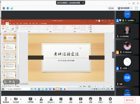 为加强幸运飞艇 学风建设,营造良好的学习氛围,使幸运飞艇 学子掌握基本考研情况,5月23日晚,幸运飞艇 通过腾讯会议线上举办第四期考研经验交流会。交流会邀请2017级胡杰文、庄亚婷、许欣楠、刘佳琳、王雪同学参加此次交流会并担任主讲人。