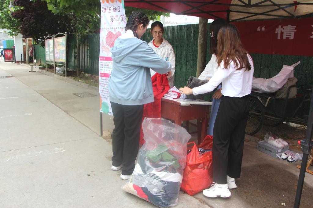 活动期间,来自不同班级、不同院系的同学停驻摊前,捐献衣物、书本等物品。许多毕业生师哥师姐将书籍和学习用品捐赠,给同在历院的师弟师妹们留下一份感动,给同一片蓝天下的贫困山区孩子带去一份爱的温暖。