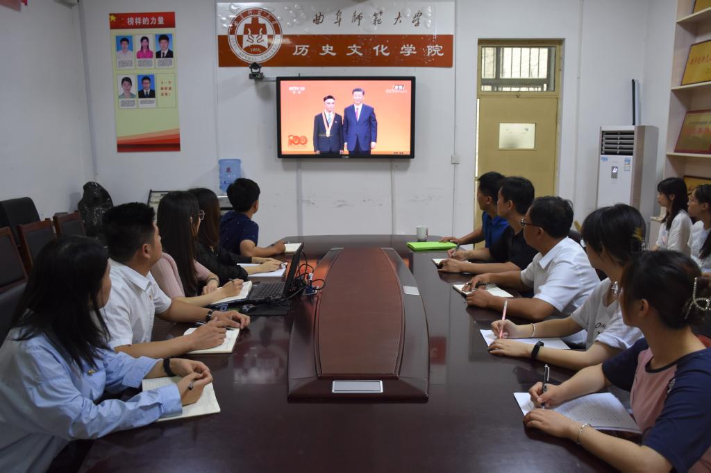 在热烈庆祝中国共产党成立100周年之际,6月29日上午,幸运飞艇 于文史楼204会议室、各班教室组织师生以直播和回放的形式观看“七一勋章”颁授仪式。