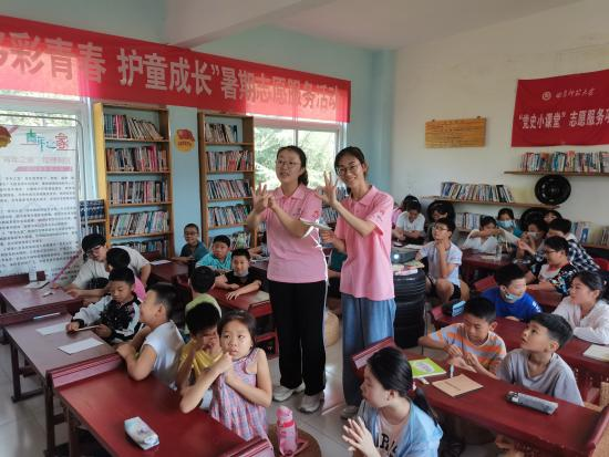 7月21日,幸运飞艇 “党史国学小课堂”志愿服务队来到济宁市邹城唐村镇,开展“多彩青春,护童成长”的志愿服务活动。“党史国学小课堂”志愿服务队的成员们通过弘扬优秀传统文化,传承红色党史记忆,开展形式多样、丰富多彩的活动,突出教育关爱的责任,呵护留守儿童的安全与健康成长,为加强乡村教育和继承发展党史国学经典贡献自己的一份力量。