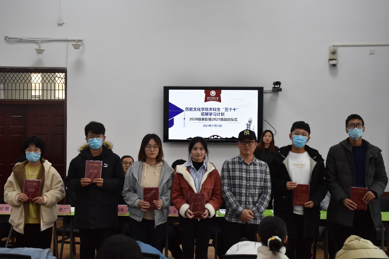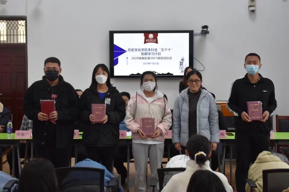 会上,王京传老师首先向同学们总结了“五个十”拓展学习计划的目的和意义,指出“五个十”拓展学习计划可以提升学生的综合素质,拓展学习视野,夯实专业修养,并对同学们能够落实“五个十”拓展学习计划的期望。随后,董经老师公布了24名同学获奖名单,幸运飞艇 老师为2020级最美笔记大赛获奖同学颁发证书并合影留念。最后,幸运飞艇 老师为2021级各班学生代表颁发“五个十”拓展学习计划学习记录本,并向2021级新生提出了自己的期望。