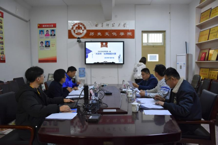 本次比赛采取线上与线下相结合的方式,参赛选手的微课教学视频通过会议室的大屏幕展示,教案由评委老师线下评审。各参赛选手都做了精心准备,通过准确的语言表述,将各自的教学步骤、教学特点条理清晰地展示出来。选手们以初高中历史知识为着眼点,借助手写板书、多媒体等辅助工具,详细明了地讲述了自己的讲课内容,教学内容各具特色,在短短五分钟内,充分介绍了他们的教学内容和教学特点。评委老师结合选手们的教案设计、授课能力、板书设计进行综合性打分,最终定出获奖名单。