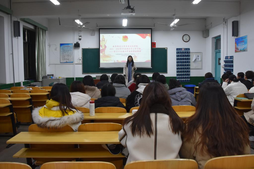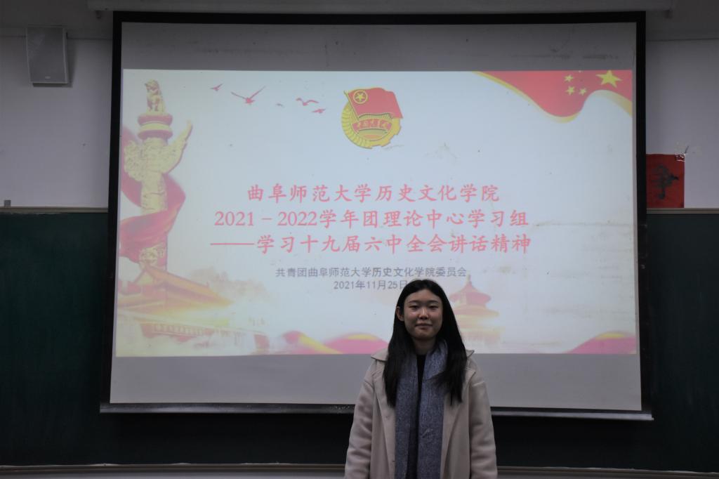 11月25日下午,幸运飞艇 团委理论中心学习组于文史楼102教室召开第三次理论学习——学习十九届六中全会讲话精神会议。会议由幸运飞艇 团委副书记石洋菁苡主持,幸运飞艇 各班团支书参加会议。