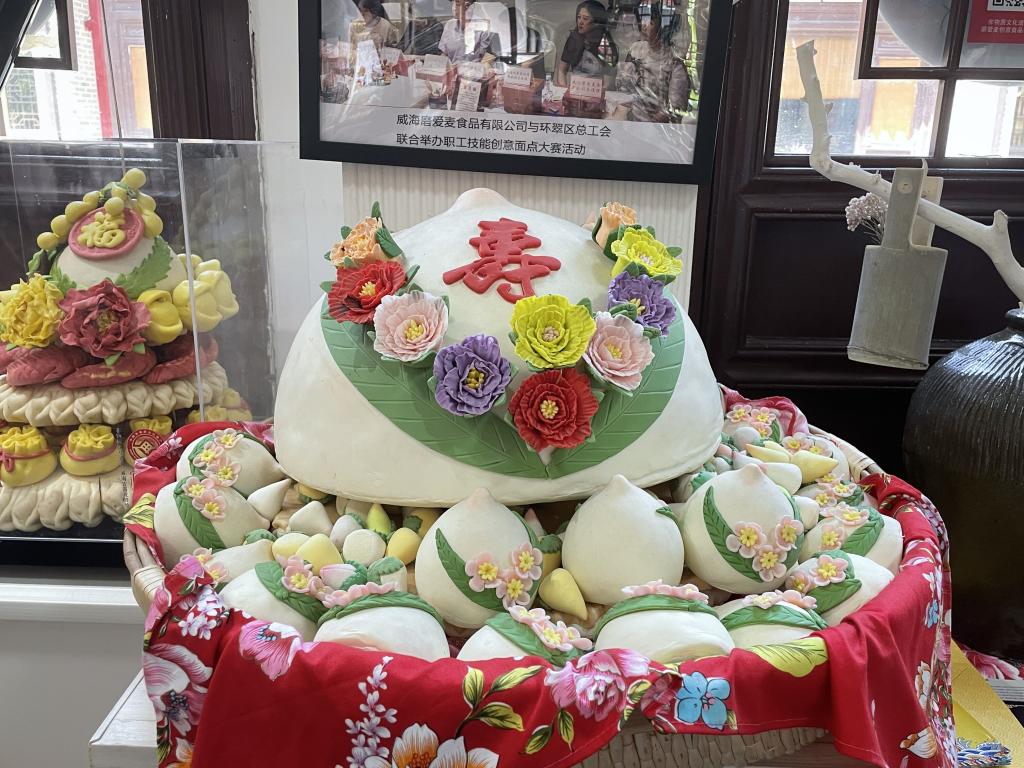 面塑,在烟台或胶东地区又称为“花饽饽”,即以面粉作原料的造型艺术。花饽饽距今有三百多年历史,不仅外观好看,而且是纯天然手工制作,营养美味,健康环保,是山东省省级非物质文化遗产。目前,花饽饽主要分为威海大花饽饽,烟台盘饽饽。其以面粉为主要原料,不仅可以捏塑成千姿百态的任务形象,还可以做成动物、花草树木等。胶东花饽饽源自民间,来自人民的生活,是中国民间的一种传统艺术。2022年7月24日上午,“儒韵齐风,匠心故里”实践团队经过统筹计划,来到威海市威高民俗文化屯拜访威海吉昌花饽饽第五代传人孙海燕女士,参观老师的工作室,并在对老师的采访中感受到面塑文化的博大精深。
