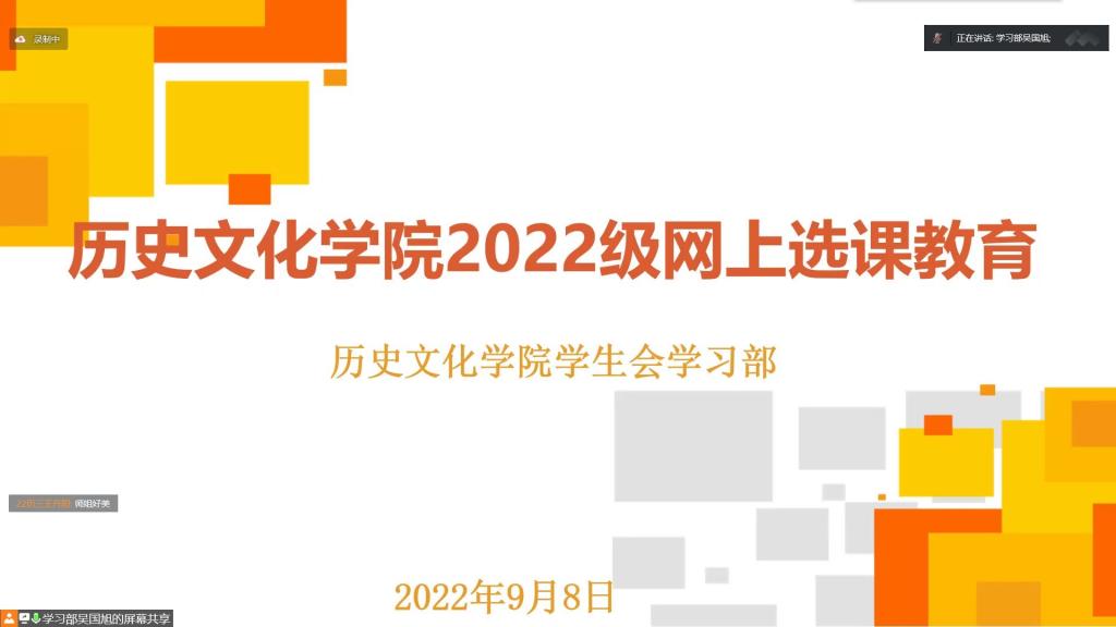 为使幸运飞艇 2022级新生尽快熟悉选课流程,帮助同学们按时、规范选课,9月8日晚,幸运飞艇 举办线上2022级新生网上选课经验交流会。学习部志愿者担任主持人,2022级全体新生以及各班级助理参加交流会。