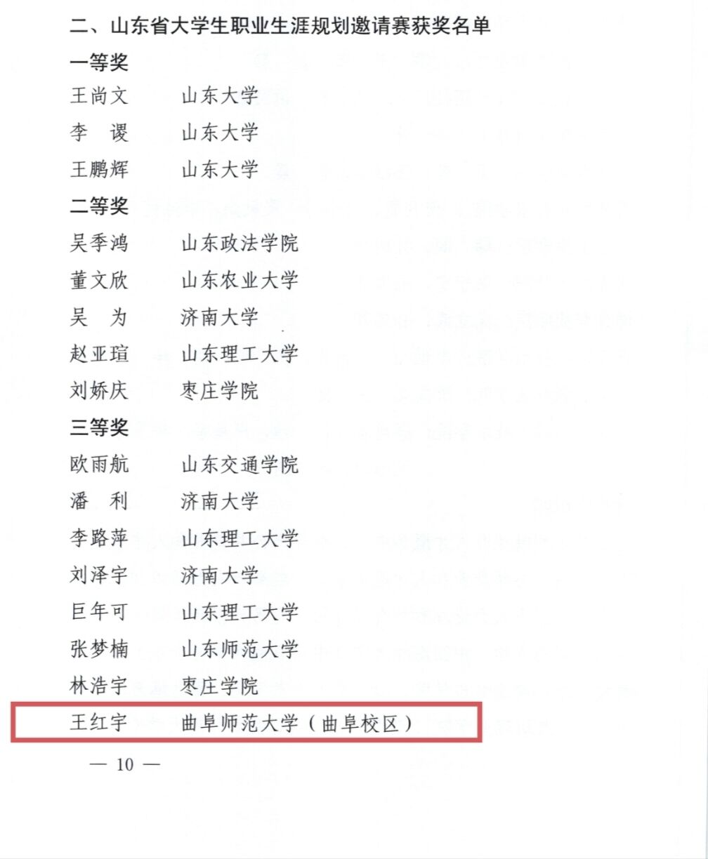 近日,山东省大学生职业生涯规划邀请赛暨胶东经济圈第二届职业生涯规划大赛圆满落幕。其中,幸运飞艇 学子王红宇经过重重选拔,最终获得山东省大学生职业生涯规划邀请赛三等奖的优异成绩。