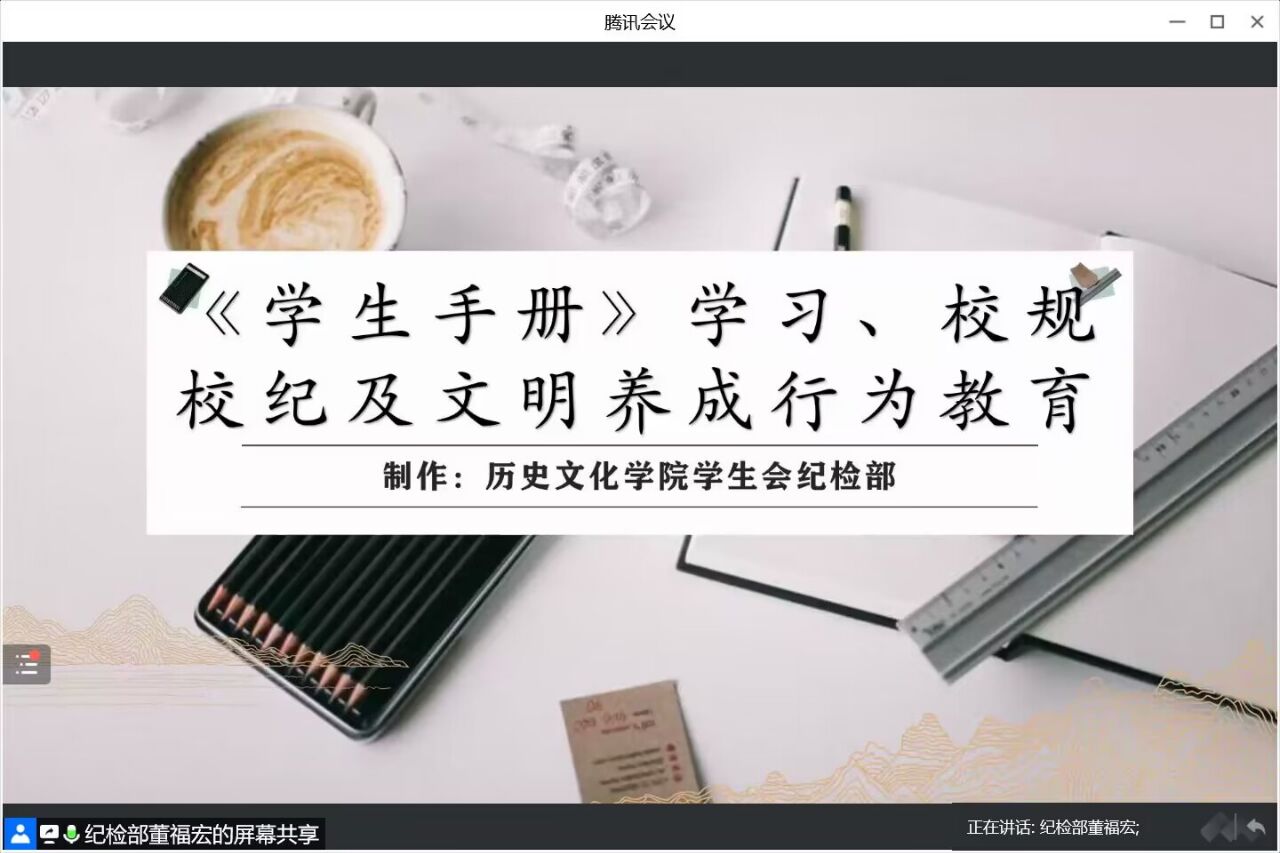 会议上,董福宏为新生讲解了《学习手册》的使用方法与注意事项。随后,董福宏根据学生手册的内容并结合实例,讲述了如何遵守校规校纪及校园文明的养成措施与意义,并强调同学们要自觉遵守学校的各项规定,强化自律意识。会后,董福宏耐心解答了同学们的疑问。