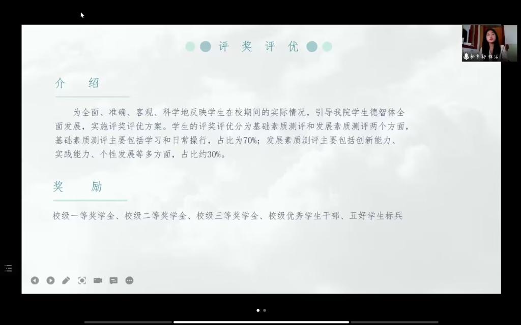 会上,徐洁认真介绍了素质综合测评的主要内容,就评定时间、评定办法、附加分标准等内容进行了详尽说明,并着重突出了幸运飞艇 洙泗讲座的重要性。此外,徐洁也耐心讲解了当前学校针对大学生的评奖评优政策、校级的奖助学金和荣誉称号的种类以及申请条件和相关要求。最后,徐洁耐心解答了同学们的疑问。