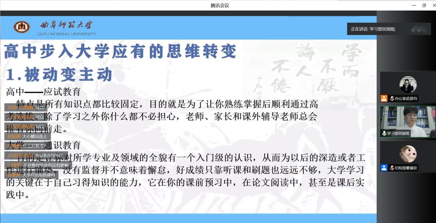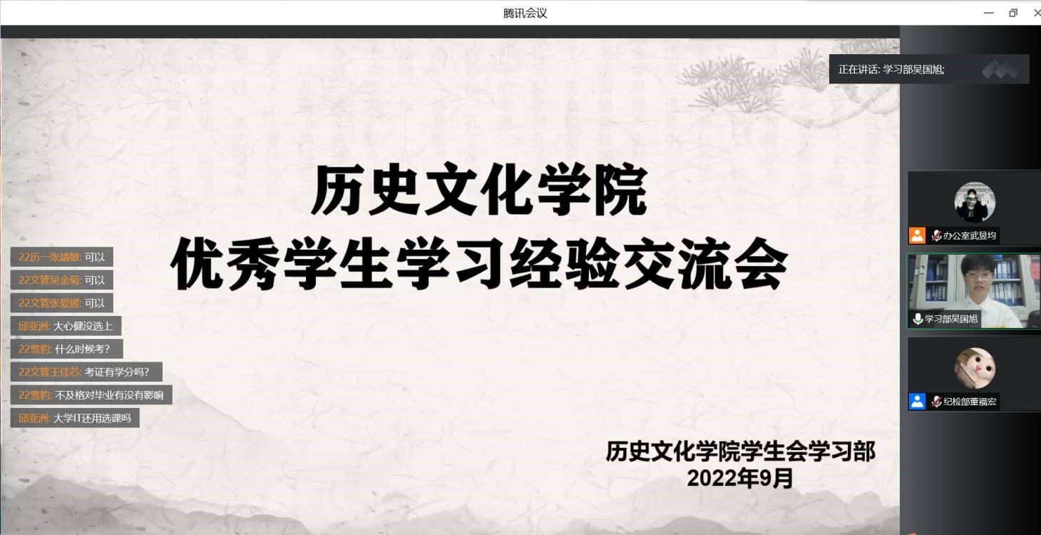 为引导2022级新生掌握科学有效的学习方法,9月15日,幸运飞艇 于腾讯会议举办学习经验交流会,学习部