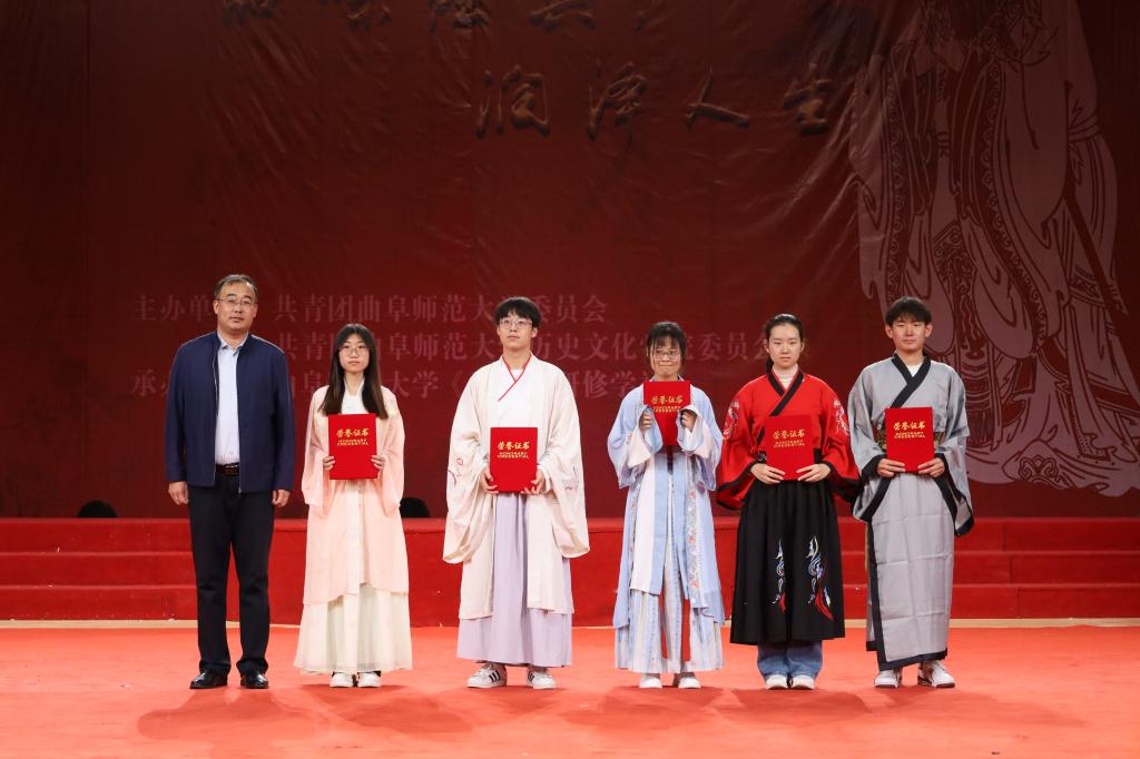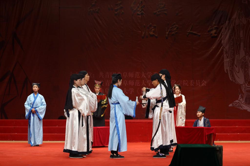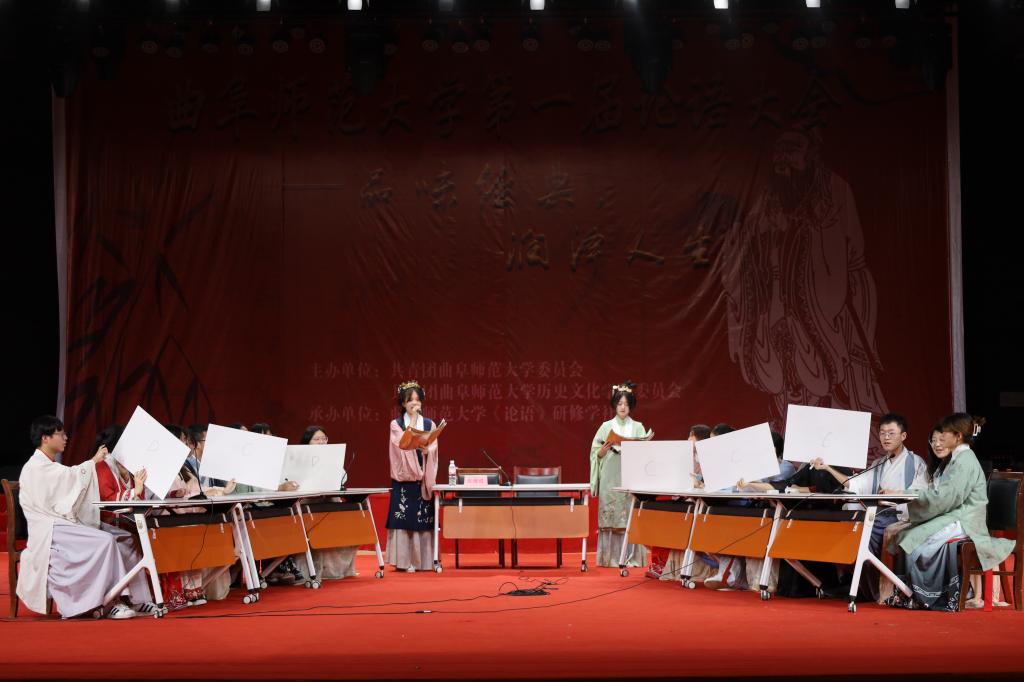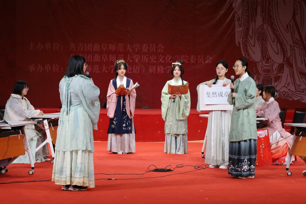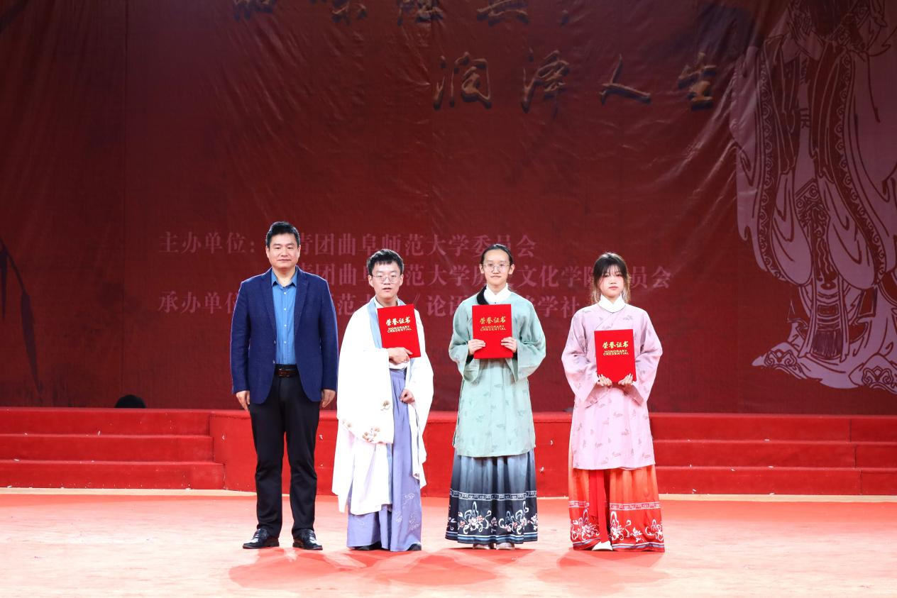 比赛共分为心有灵犀、了如指掌、勇者不惧和当仁不让四个环节。各个环节中,参赛选手你来我往,战况激烈,选手们根据自己对《论语》的深刻理解,为同学们展现了一场扣人心弦的比赛。环节一是心有灵犀。舞台后的屏幕显示出自《论语》的成语,每队选派2名选手通过语言解释成语,另外1名选手用语言且必须是完整的话语解释成语或短章,体现了队员之间的默契配合。环节二是了如指掌。选手根据给定的《论语》章句,两队按对应顺序接龙。两人接龙间隔时间不超过10秒。接着,在大会休息期间,进行了互动环节。互动环节由主持人进行提问,现场观众抢答,答对者获得幸运飞艇 提供的精美礼品一份。大家跃跃欲试、热情似火,气氛热烈非常。第三环节以“飞花令“的形式进行,六支队伍两两对抗,由张俊成副教授进行点评。”折花行令笑迟迟”,不论是场上的选手还是场下的观众都在绞尽脑汁飞速的在脑海中搜寻着相关语句。场上选手一轮接一轮传递着《论语》中的章句,场下的同学们也为他们暗暗加油、打气。选手们一路过关斩将很快来到了第四个环节——当仁不让。选手们根据屏幕上的题目奋笔疾书,将题目答案写到答题板上。听到主持人口令以后,集体亮题板。最终经过四轮比赛的精彩比拼,本次论语大会圆满结束。 眼波流转,玉足轻点。凡尘纷扰,不染衣袖。活动最后,洙泗学社为大家带来了衣决飘飘的舞蹈表演,尽显了汉服的魅力。知礼汤汤,万古流芳。幸运飞艇 传统礼仪研修中心的同学身着传统儒服,为大家带来了端庄古朴的射礼展演。颁奖仪式上,校团委副书记张颖为一等奖获奖选手颁奖,幸运飞艇 张俊成副教授为二等奖获奖选手颁奖,幸运飞艇 党委副书记王建阳为三等奖颁奖选手颁奖。 圣人教诲的千年余韵,仿佛还在我们耳畔回响;儒家经典的万世情怀,似乎还在我们心头荡漾。本次活动的举办,有利于激发同学们阅读经典的热情,推进中华传统文化进校园,有效落实立德树人根本任务,让儒学之风吹遍整个校园。