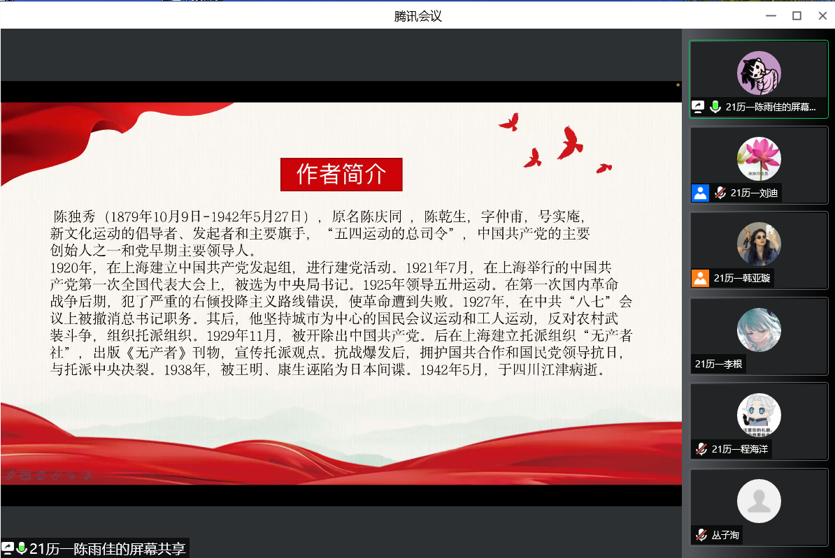 为深入开展党史学习教育,推动幸运飞艇 学子学深悟透百年党史,幸运飞艇 于6月4日晚举办读党史、悟初心读书会。本次读书会由张世慧老师指导,杜林欐同学主持。