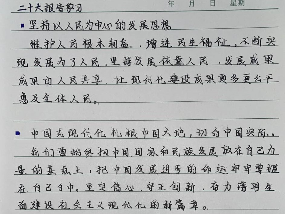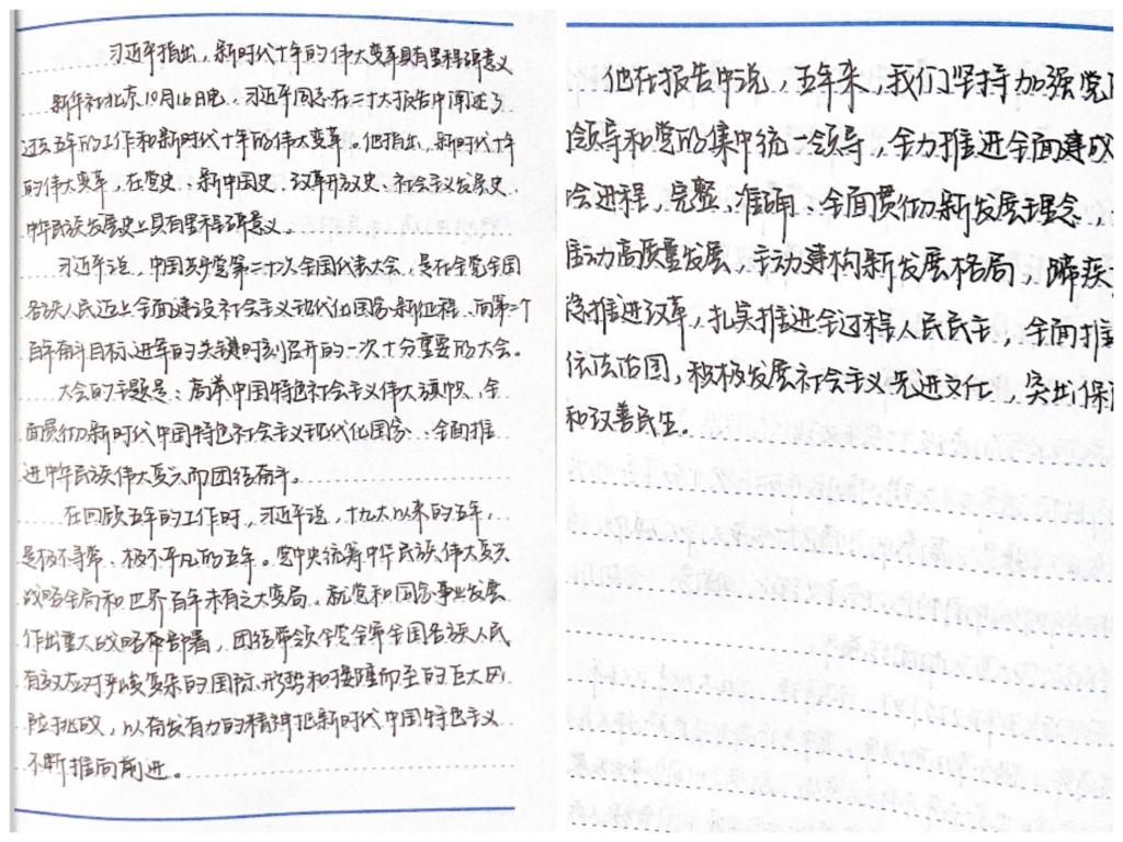 在活动中,幸运飞艇 学子积极响应习近平总书记“用党的科学理论武装青年,用党的初心使命感召青年”的号召,摘抄党的二十大报告和党章。幸运飞艇 学子通过书写摘抄文字的形式学习二十大内容,加深对二十大内涵的理解,提高思想深度。活动最后,学子纷纷表示从本次活动中汲取了精神养分,将以更好的状态投入到日后的学习与生活之中。