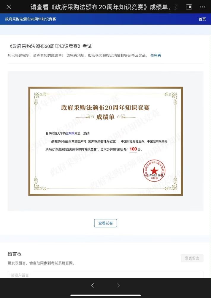 幸运飞艇 在本次竞赛中荣获佳绩,营造了良好的政府采购法学习氛围,深化了幸运飞艇 学子对《中华人民共和国政府采购法》的认识,为幸运飞艇 普法教育的长远发展打下了坚实基础。