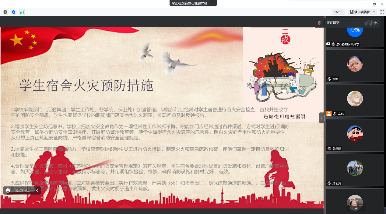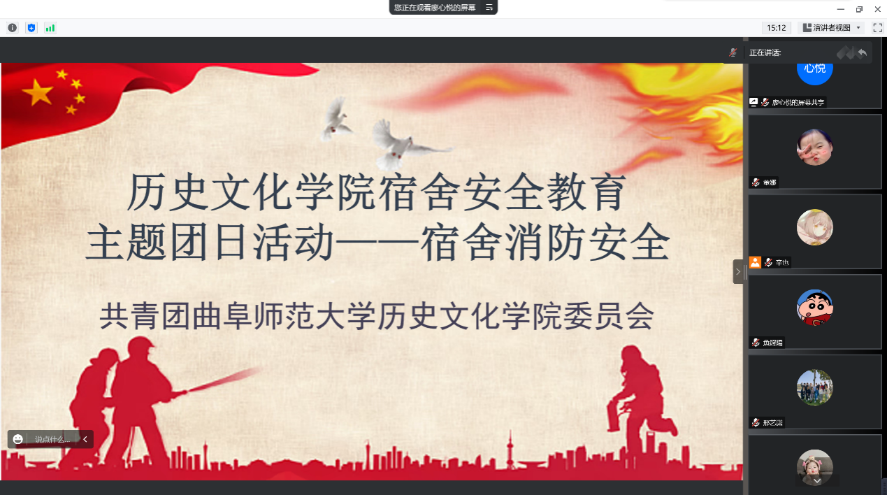 本次活动围绕宿舍消防安全教育主题,采用主题团日线上会议的形式对幸运飞艇 学生进行全面的教育宣传。会议中,主持人通过生动详实的PPT,讲解了宿舍的火灾隐患,着重强调了学生宿舍火灾预防措施以及遇到火灾的处理方式。在最后的答疑环节中,同学们积极互动,提出疑惑,主持人耐心解答,现场气氛活跃。
