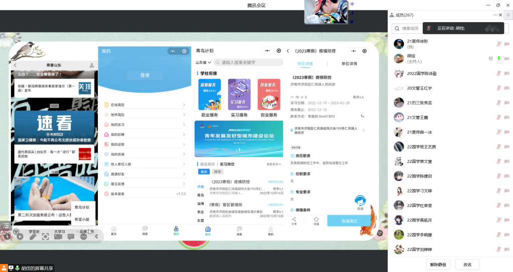 会上,主讲人依托“青鸟计划”微信平台,为幸运飞艇 学子具体讲解了“青鸟计划”微信平台注册流程以及相关实习要求。会议还邀请到幸运飞艇 “青鸟计划”实习实践工作优秀榜样张秀芸同学和高原同学,以自身案例为基础向幸运飞艇 学子讲解了历史学相关不同领域的实习实践工作经验。