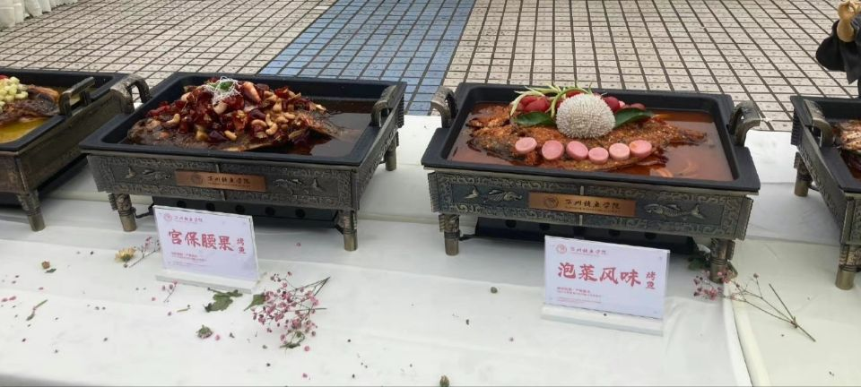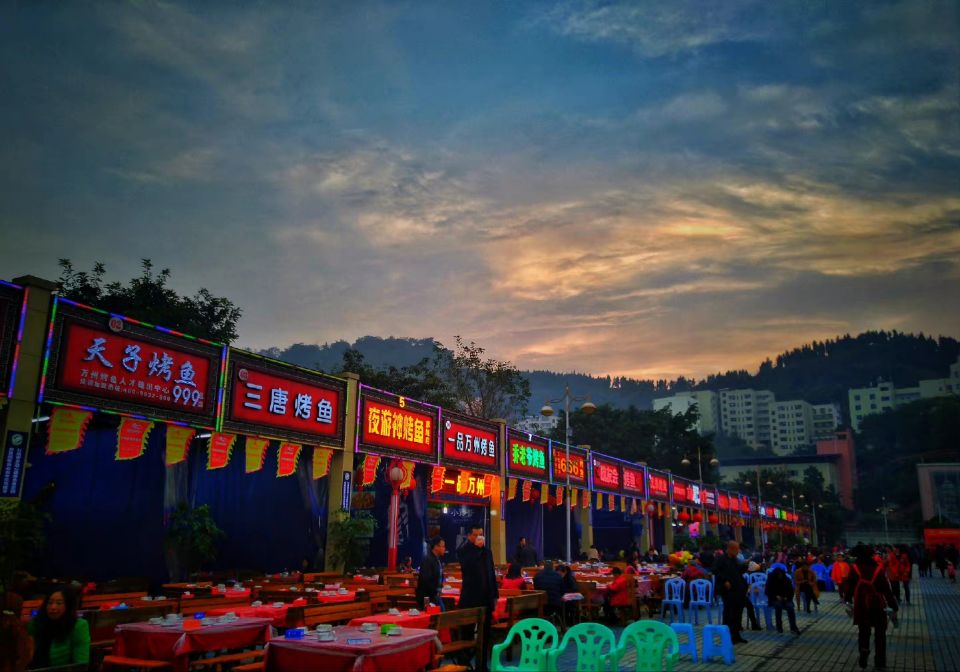 在实践活动中,团队成员首先走进了江南会展广场、天生城古镇两大主会场。活动现场参展的企业有60余家,主要为区内的特色商品和美食经营单位,这些企业集中展销老字号产品,有万洲牛肉干、涌湖茶叶、伴神调味品、鱼泉榨菜等。其中最吸引实践队员的是作为重庆市级非遗美食的万州烤鱼。经采访了解到,烤鱼师用火龙果和猕猴桃作为烤鱼配菜,除此之外还有虾搞烤鱼、腊肉茶树菇烤鱼、桔香烤鱼、鲍鱼烤鱼等多种口味的烤鱼,实现了万州烤鱼非遗的创新性变革、创造性转化。随后,团队成员集体打卡文旅古街天生城,踩景后备箱集市,欣赏川剧团的表演,感受万州的烟火气。伴随着音乐的响起,独唱、群舞、魔术等丰富多彩的演出将现场的氛围拉至高潮,活动现场掌声雷动,欢呼不间断。活动最后,项目主办方代表为年度被评为万州老字号、万州餐饮名店、美食直播达人等获奖者进行颁奖,并为万州“一乡一味”特色美食授牌。活动重点打造的万州烤鱼也获得了不少国内外的新粉丝,将非遗美食特有的魅力无限释放。