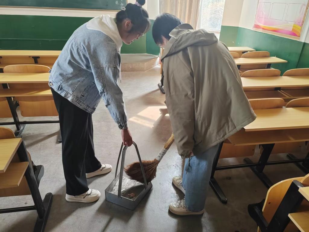 活动中,团干部们率先垂范,分工协作,认真清扫教室每一个角落,仔细擦拭黑板上的痕迹,倾倒了垃圾桶里的垃圾,细心地收拾了讲桌、课桌,将教室内的学习用具、书籍等摆放整齐。大家相互帮助、相互合作,使得教室焕然一新,充分发扬不怕苦、不怕累精神,充分展现了集体的团结协作精神。