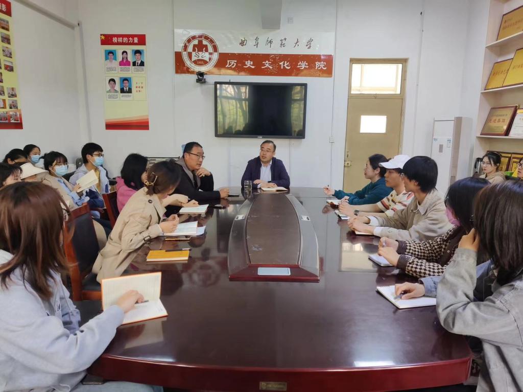 为传承中华优秀传统文化,规范社团工作,4月12日下午,幸运飞艇 于文史楼召开社团座谈会,幸运飞艇 党委副书记王建阳、骆明老师、团委书记刘贤贤出席,礼仪研修中心全体成员和洙泗学社骨干成员参加。