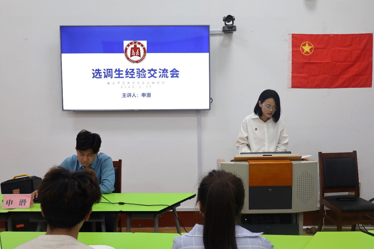会议伊始,主讲人根据自身的求学以及就业经历向同学们介绍了基层工作。接着,从何为选调生,选调生报考资格,选调生考试步骤等几个方面向大家解释了选调生政策,回答了同学们有关这一政策的疑惑。最后,申潜向大家表达了自己的美好祝愿,同学们收获颇深。