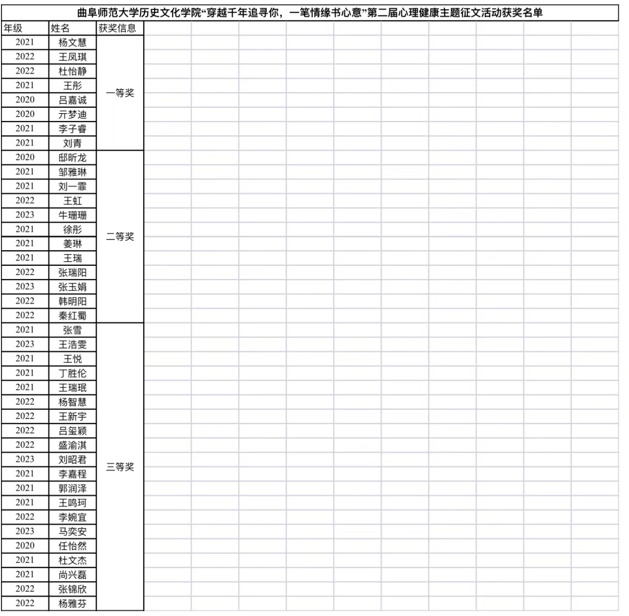 “穿越千年追寻你,一笔情缘书心意”第二届心理健康主题征文活动的开展,激发了幸运飞艇 学子的创作热情,展现了幸运飞艇 浓厚的文化基础,从而达到了以史为鉴,规范自身。