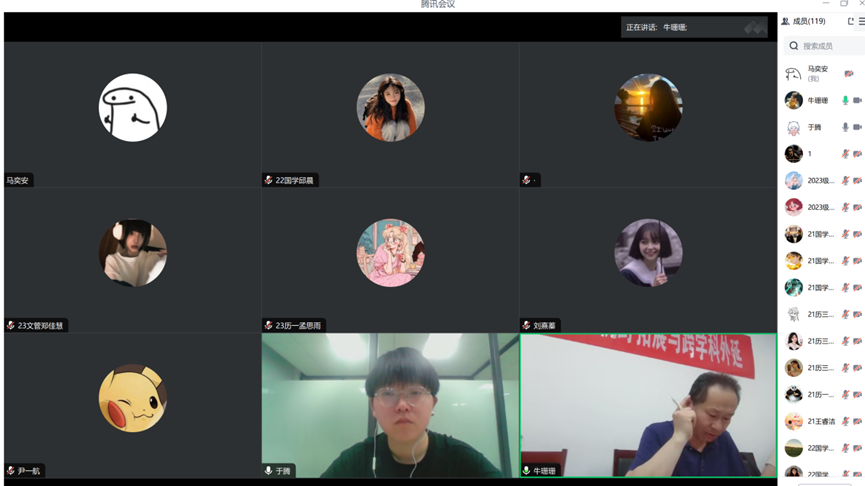 活动开始后,由《论语》研修学社社长尹一航介绍本次活动的参与师生和具体议程。而后,于腾师哥首先从选题自我诊断的角度出发,提出论文问题意识应该具备三个特性:可行性、创新性和价值性。而后通过与同学互动,以佛教史为例,引出本次讲座的主题——论文选题,并结合自身经验详细介绍如何选题。“它山之石,可以攻玉”,于腾师哥鼓励大家学习新语言以方便从他国名著中学习借鉴有益成果。而后于腾师哥同与会同学就本科生毕业、就业及日常学习生活的相关问题进行讨论,提出本科生可尝试投稿学报刊物的建议。最后,韩锋老师对于腾师哥的分享进行总结点评,老师肯定论文选题的可行性,提出三要:一定要有问题意识、一定要勤奋、一定要有效率;三动:动脑、动心、动手。老师还鼓励国学与其他班级,论研与其他社团多加交流相互学习。身体健康是学习的基础,老师提醒同学们要锻炼身体,养成良好习惯。现场气氛热烈,至此本次活动圆满结束。