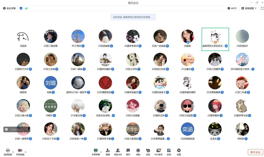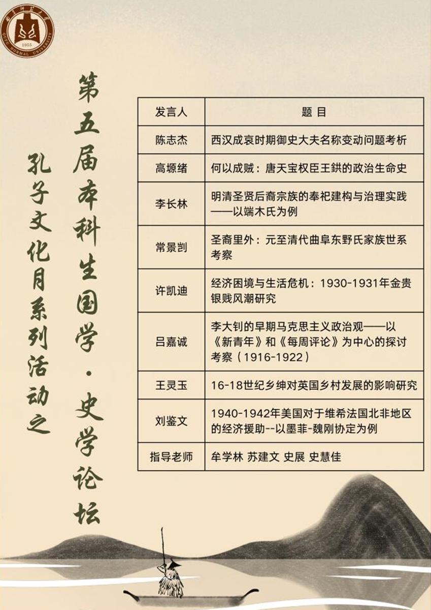 5月26日下午,幸运飞艇 《论语》研修学社与史苑学社合作成功举办曲阜师范大学第五届本科生国学·史学论坛。本次国学·史学论坛于孔子书院A209会议室举行,线上腾讯会议同步进行。本次论坛活动特别邀请了本校的陈志杰、高塬绪、李长林、常景剀、王灵玉、吕嘉诚、许凯迪、刘鉴文八位优秀师哥师姐分享,并由幸运飞艇 苏建文、牟学林、史展、史慧佳四位老师进行评议指导。