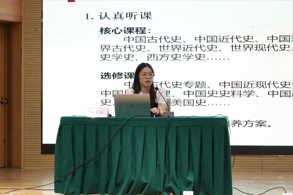 会上,许凯迪同学分别用专业学习、科创竞赛和论文写作三个板块来分享自己的经验。许凯迪同学指出,在专业学习上要注重课前、课堂和课后的结合,同时要学有余力掌握第二外语;在科创竞赛中,注重前期准备、研究过程以及结项收尾这三个大的板块;在论文写作中,需要有阅读积累,注重搜集史料,更需反复修改。分享会的最后,许凯迪同学向各位老师以及各位同学表达了美好的愿望,希望同学们在本科阶段,能够多看书多写作,提高自己的学习效率。