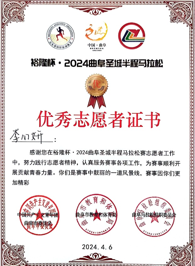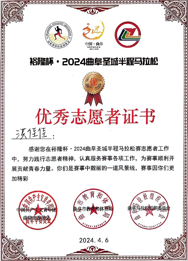 为了协助维护比赛秩序,为参赛者提供引导等服务,保障赛事顺利进行,3月9日—3月12日,应共青团曲阜市委邀请,幸运飞艇 开展“2024曲阜圣城马拉松”志愿者招募活动。经过层层选拔,幸运飞艇 共有51名同学成功担任圣城马拉松志愿者。