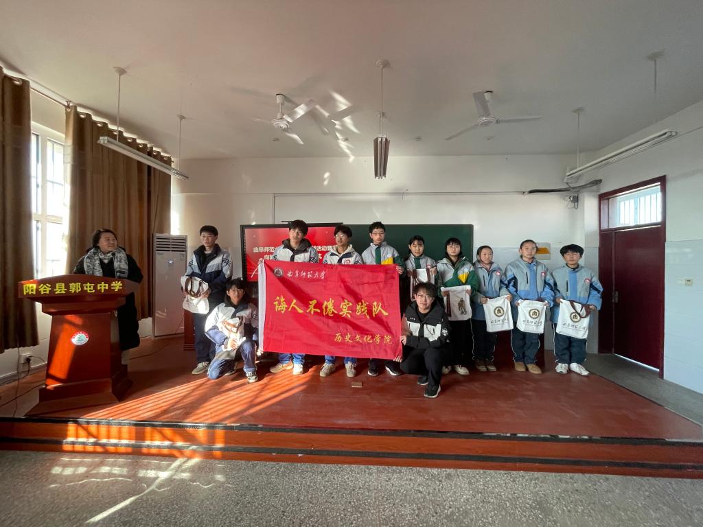 在教育的广袤星空中,教育家精神如璀璨星辰,指引着无数教育工作者前行的方向。为弘扬教育家精神,推动其深入校园及社会,曲阜师范大学“诲人不倦队”积极响应“返家乡”社会实践活动的号召,踏上了前往郭屯中学的爱心之旅,开展了一场意义非凡的爱心捐赠活动,为优秀贫困学子送去了宝贵的学习资料,也为当地教育事业注入了一股温暖而坚实的力量。
