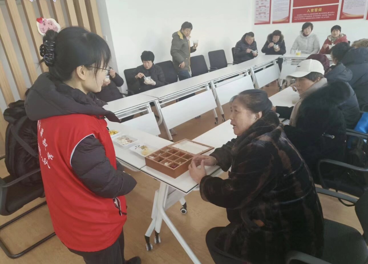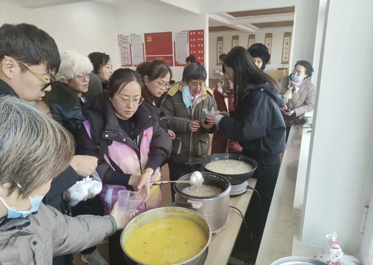 上午九时,活动室迎来大批社区居民,以长者为主。队员们早已将场地布置得温馨喜庆:墙上张贴着腊八节起源、习俗的红色海报,长桌上整齐摆放着粥碗、勺子,热气腾腾的腊八粥分为甜粥(加入红枣、桂圆)和淡粥(纯谷物)两类,满足不同口味需求。