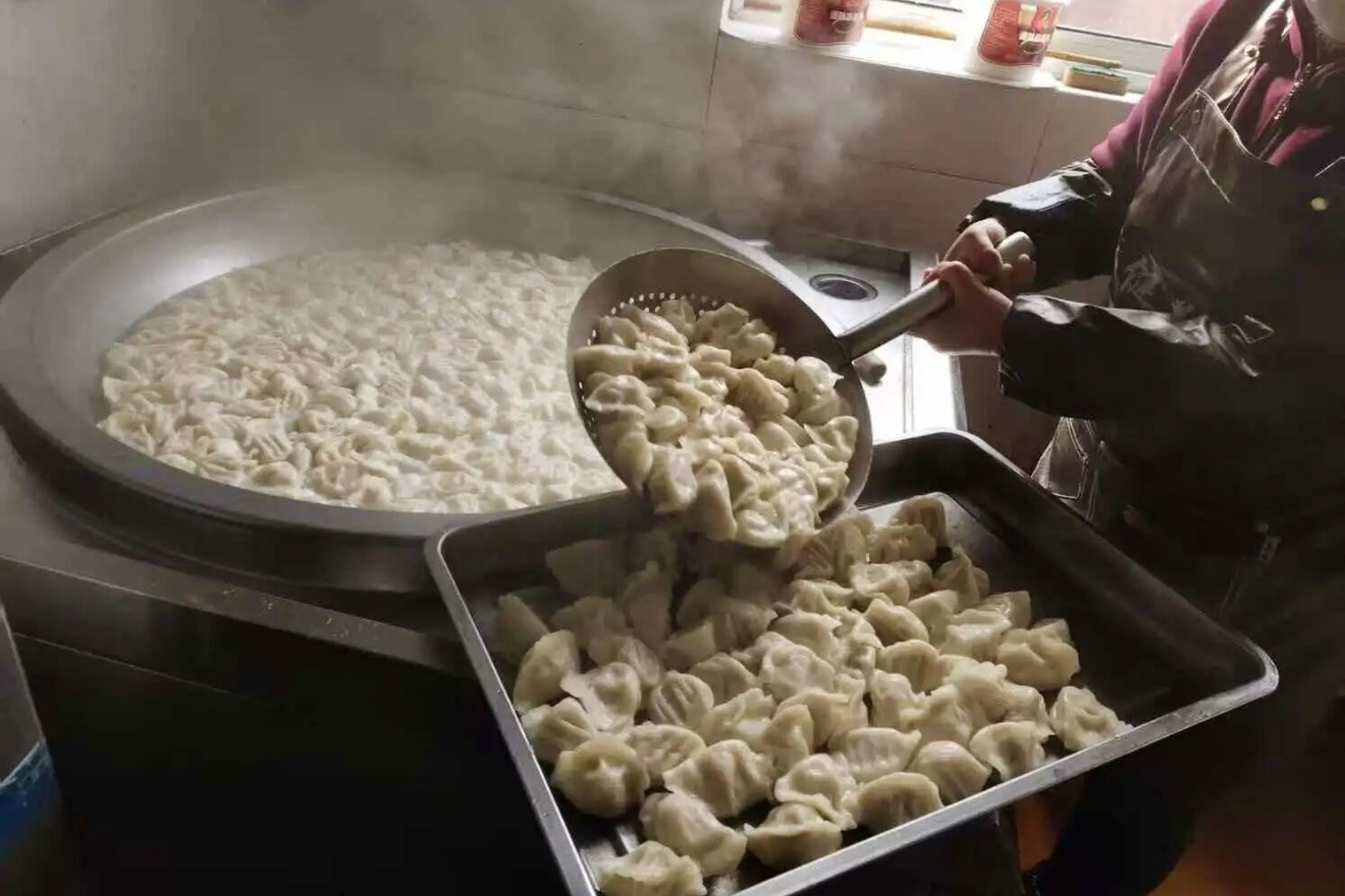 与此同时,另一部分队员在厨房协助工作人员煮饺子。随着一锅锅热气腾腾的饺子出锅,浓郁的香味弥漫在整个餐厅。队员们小心翼翼地将饺子盛到碗里,根据老人们的食量适量分配,然后端到每位老人面前,贴心地提醒他们 “慢慢吃,小心烫”。老人们品尝着鲜香可口的饺子,脸上露出了欣慰的笑容,纷纷称赞:“这饺子味道真好,比家里包的还香!”