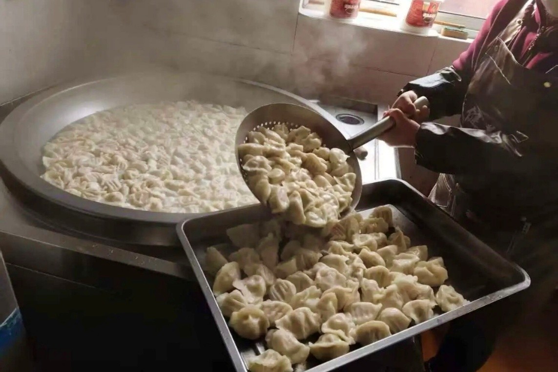 与此同时,另一部分队员则在厨房协助工作人员煮饺子。随着一锅锅热气腾腾的饺子出锅,浓郁的香味弥漫在整个餐厅。队员们小心翼翼地将饺子盛到碗里,根据老人们的食量适量分配,然后端到每位老人面前,贴心地提醒他们“慢慢吃,小心烫”。老人们品尝着鲜香可口的饺子,脸上露出了开心的笑容,纷纷称赞:“这饺子味道真好,比家里包的还香!”