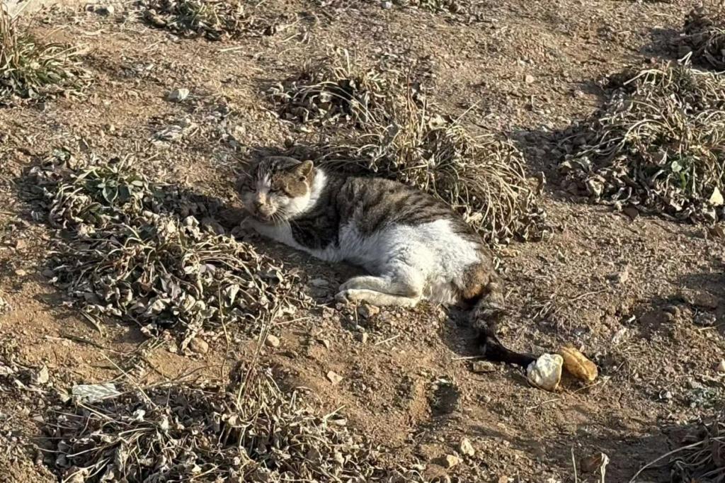就在清扫工作有序推进、现场环境焕然一新之际,一名队员在社区边缘的道路旁草丛中,突然发现一只蜷缩在地、浑身不停颤抖的小猫。只见小猫身体十分虚弱,眼神惊恐,嘴角破裂受伤,牙齿外露,无法正常站立和行走,从伤势情况初步判断,疑似被过往车辆不慎撞伤。小猫无助蜷缩的模样,让队员们都心生怜惜,大家当即决定,立即暂停清扫工作,全力救助这只受伤的小生命。