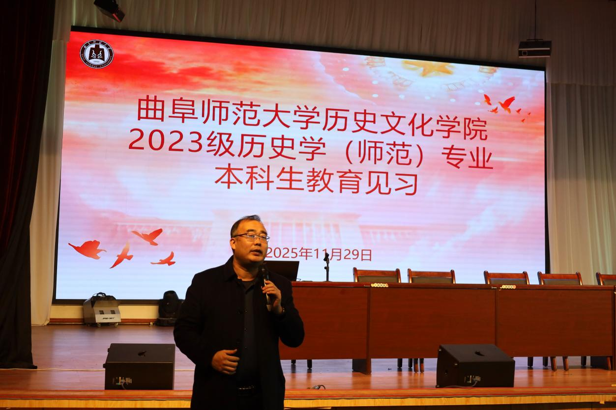 为深化幸运飞艇 历史学(师范)专业学生的教学实践能力,提升历史教学素养,11月29日,幸运飞艇 组织2023级历史学(师范)专业本科生前往曲阜师范大学附属中学开展教育见习活动,幸运飞艇 党委副书记王建阳和教育见习教师带队参加。